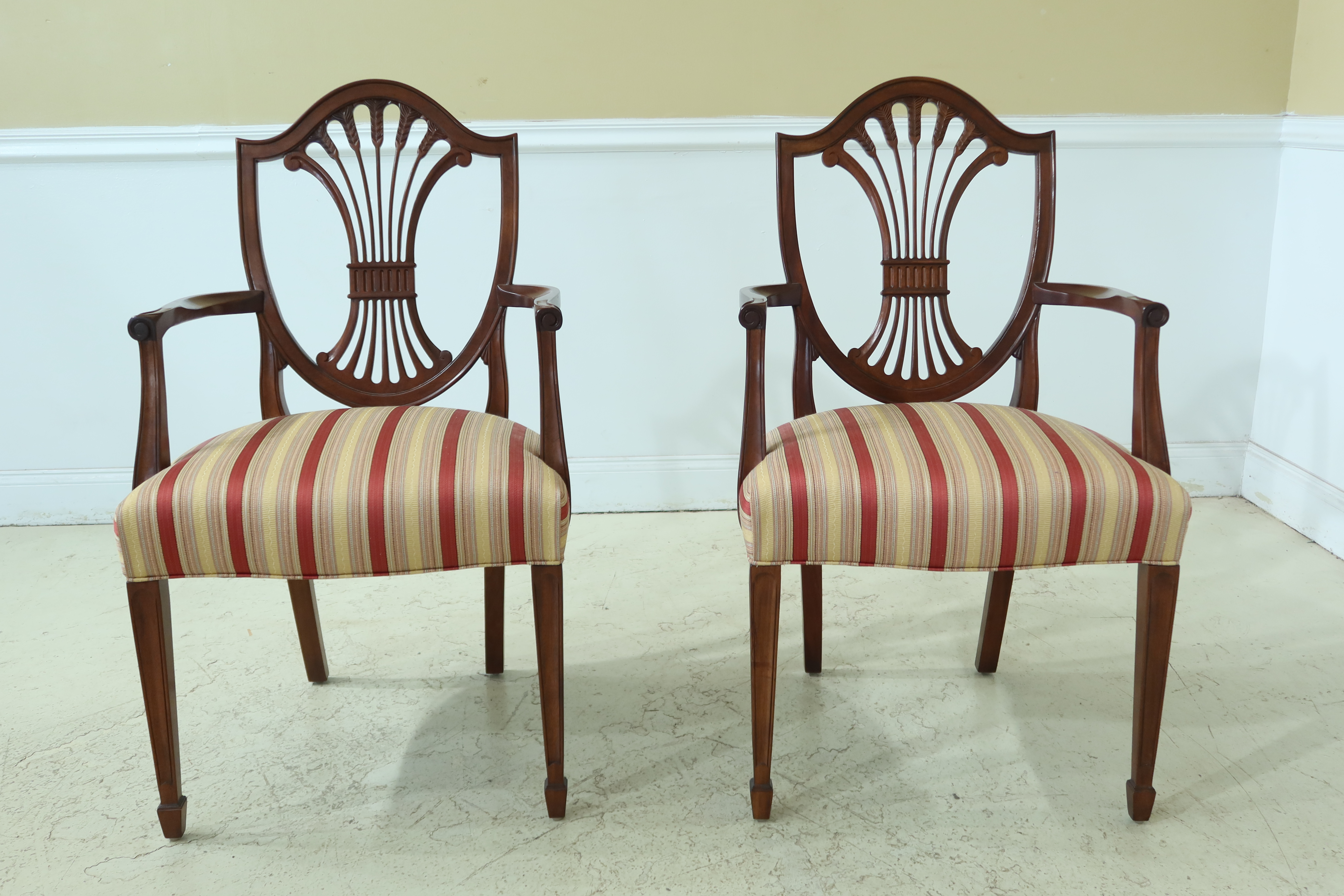 This is a beautiful antique regency style dining table with a set of 10 vintage matching chairs. We are pleased with these. Includes 2 dining chairs, woven abaca finish, dual natural mahogany stain finish. They have been crafted from solid mahogany and are in excellent reupholsterd and polished condition, ready to grace your dining room. Get the best deals on mahogany dining sets.